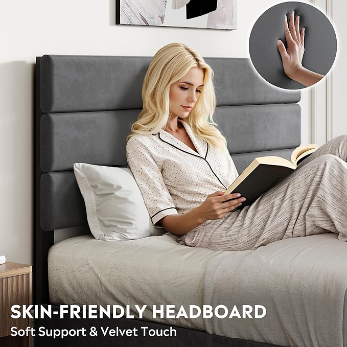 - 【Premium Upholstered Design】 Upholstered in premium velvet fabric with high-density foam padding for a soft, comfortable feel; tufted headboard design adds a touch of elegance to any bedroom. Modern and versatile design fits various home styles.