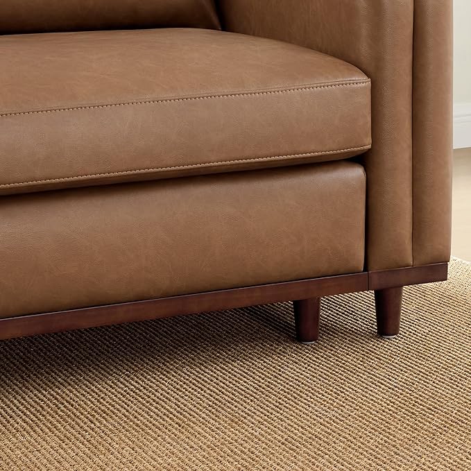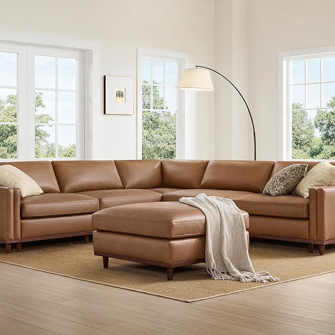CHITA 114" Super Large Luxury V Shape Corner Sectional Modular Sofa, Down Filled Modern Sofa, Deep Seat Comfty Cloud Couch, 5 Seat Couch with Chaise, Solid Wood Leg, Faux Leather in Camel