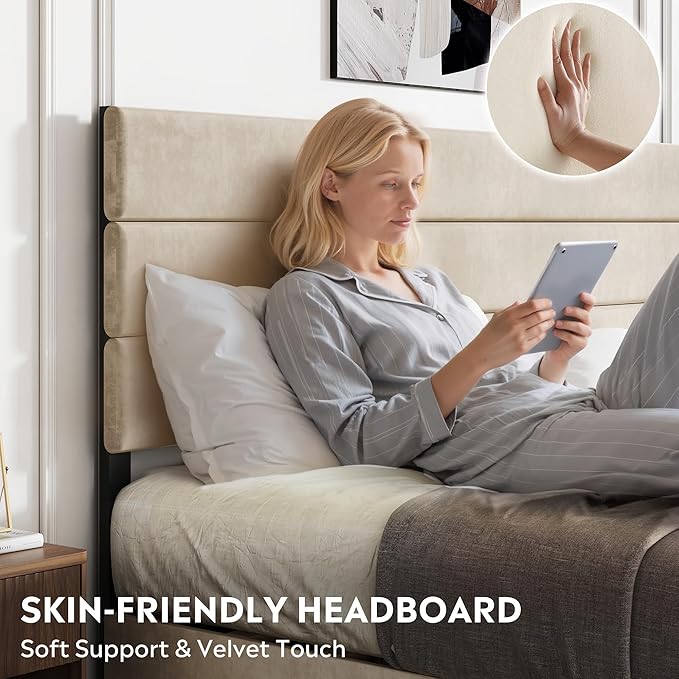 - 【Premium Upholstered Design】 Upholstered in premium velvet fabric with high-density foam padding for a soft, comfortable feel; tufted headboard design adds a touch of elegance to any bedroom. Modern and versatile design fits various home styles.