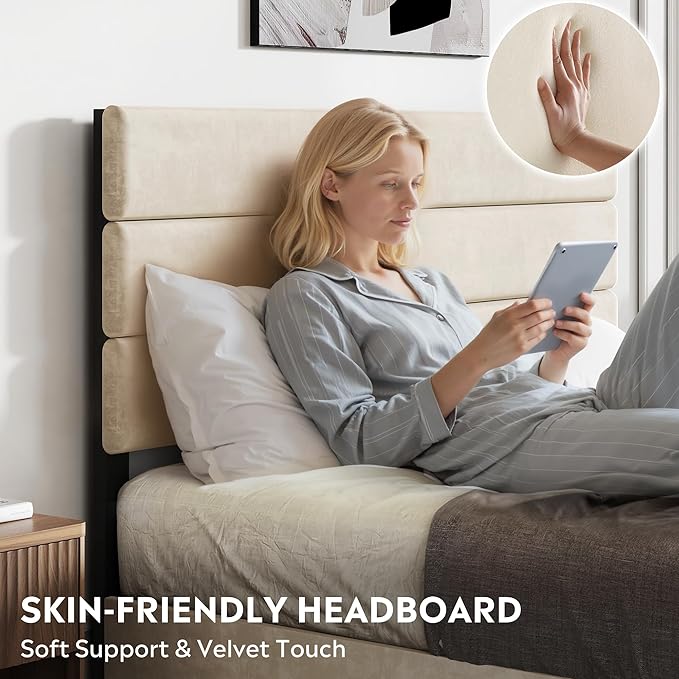 - 【Premium Upholstered Design】 Upholstered in premium velvet fabric with high-density foam padding for a soft, comfortable feel; tufted headboard design adds a touch of elegance to any bedroom. Modern and versatile design fits various home styles.