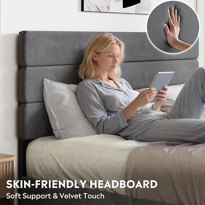 - 【Premium Upholstered Design】 Upholstered in premium velvet fabric with high-density foam padding for a soft, comfortable feel; tufted headboard design adds a touch of elegance to any bedroom. Modern and versatile design fits various home styles.