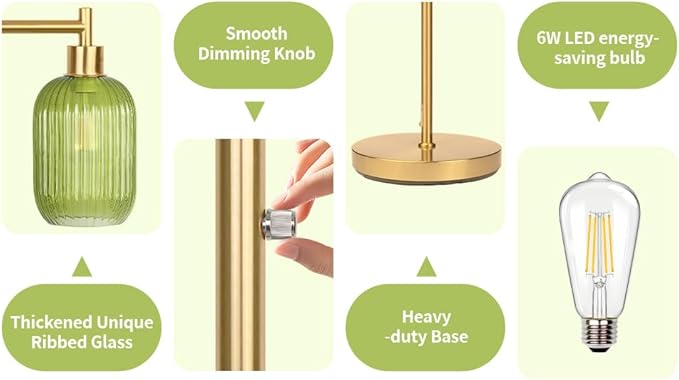 - Elegant Green Glass Shade:Our Floor Lamp comes with a elegant Green Glass Shade,which will give you a pleasant feeling and decoration to your house.reflesh your rooms more comfortable and enjoyable