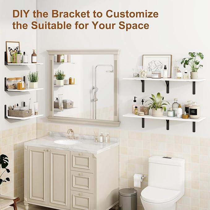 - 【STURDY & RELIABLE SUPPORT】Features heavy-duty L-shaped iron brackets that provide exceptional strength and stability, securely holding heavy items without bending or wobbling. Easily modify your floating wood shelf to fit your needs and Display succulent plants, collectibles, Trophies, Photos, Frames, book shelves.