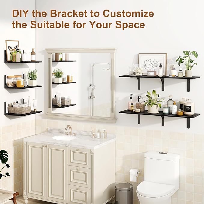 - 【STURDY & RELIABLE SUPPORT】Features heavy-duty L-shaped iron brackets that provide exceptional strength and stability, securely holding heavy items without bending or wobbling. Easily modify your floating wood shelf to fit your needs and Display succulent plants, collectibles, Trophies, Photos, Frames, book shelves.