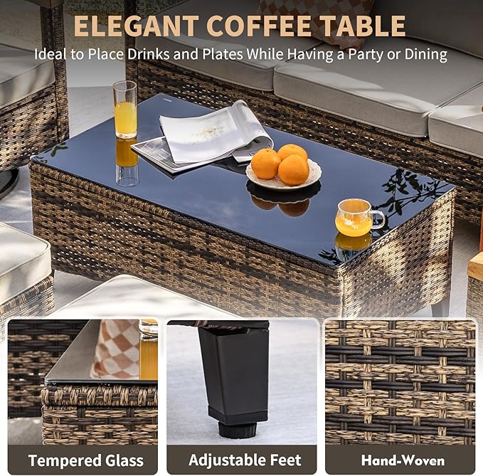 - All-Weather Use: Built with a powder-coated steel frame and hand-woven PE rattan, this outdoor patio furniture set is weather-resistant, rustproof, and built to last through all seasons