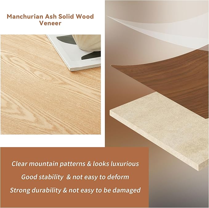 - [Sturdy Wooden Material] The overall frame material of this round top coffee table is made of thickened MDF, and the surface is covered with Manchurian Ash wood veneer and the surface paint spraying process and the large mountain wood grain make the tabletop look very beautiful. The vertical groove stripes around the coffee table are decorated with rubber wood strips, and each one is manually nailed by workers to ensure the beauty of each coffee table.