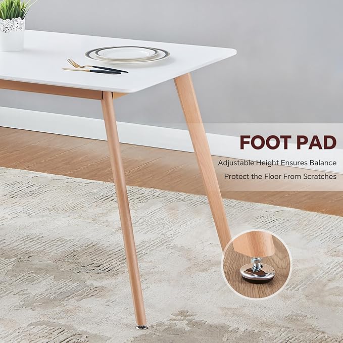 - Mid-Century Modern Design: This sleek white rectangular dining table features a minimalist mid-century modern style with a smooth MDF tabletop and solid wood legs, blending effortlessly with any home decor—perfect for dining rooms, kitchens, or living spaces