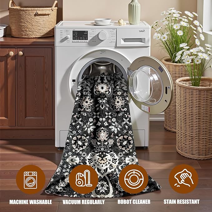 - [Washable & Easy to Clean]: Our rugs are machine washable and easy to maintain. Quickly air-dry due to the thin pile design. Use a vacuum cleaner, or broom, or wipe several times per week or deep clean regularly on the situation.Product note: When you receive a new throw rug with a crease, you could try rolling it up the opposite way for two full days, then laying it flat on a clean floor.