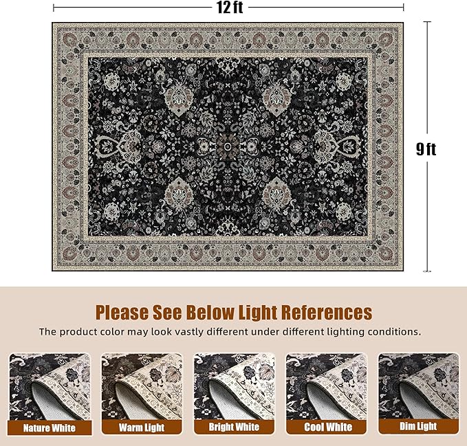 - [Washable & Easy to Clean]: Our 9x12 rugs are machine washable and easy to maintain. Use a vacuum cleaner, or broom, or wipe several times per week or deep clean regularly on the situation. Product note: When you receive a new throw rug with a crease, you could try rolling it up the opposite way for two full days, then laying it flat on a clean floor.
