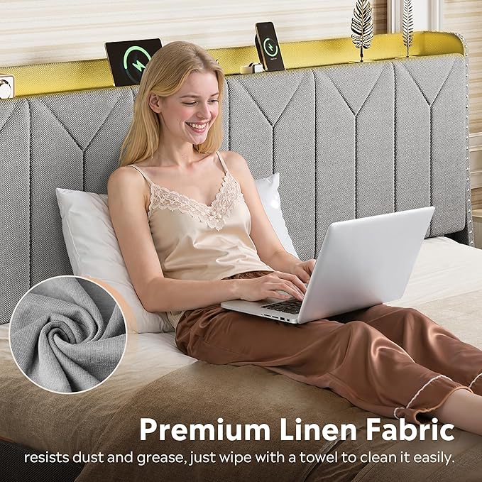 - 【Comfortable and Easy-to-clean Headboard】 The headboard is upholstered in soft linen fabric that resists dirt and stains and is easy to clean. High-resilience foam padding offers comfortable back support while enhancing bedroom aesthetics.