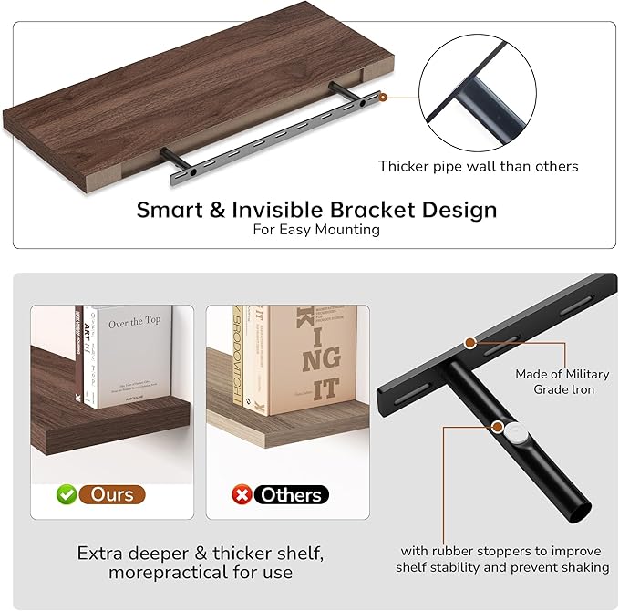 - Easy to Assemble & Install: Each shelf comes with everything you need for quick and easy assembly: durable steel invisible brackets, toggle bolts for drywall, and a straightforward instruction manual. With just one or two boards and a few screws, you can have the shelf up in no time. The included step-by-step instructions make the installation process hassle-free, and our customer support team is always available if you need assistance.