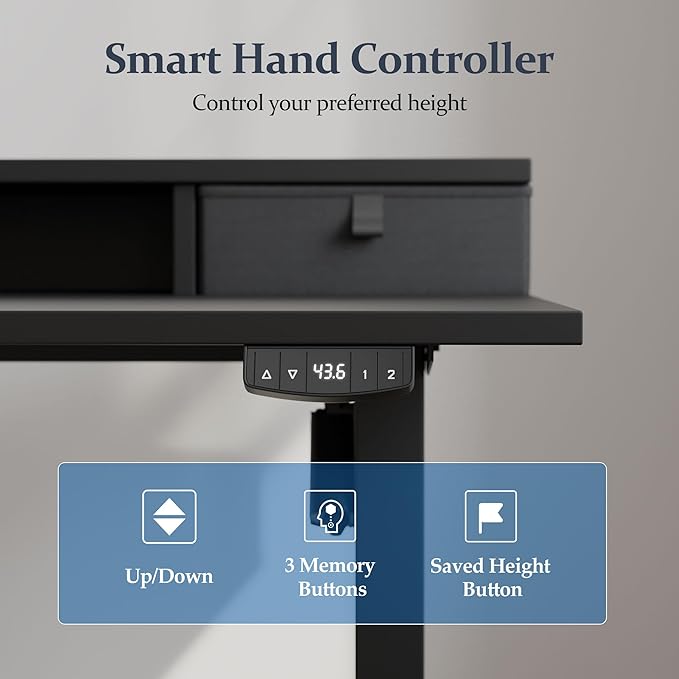 - [Smart Control] Adjust your desk like a pro. The intuitive control panel features memory presets that remember your favorite heights, so you can go from "morning work mode" to "evening chill mode" instantly — one tap, zero hassle.