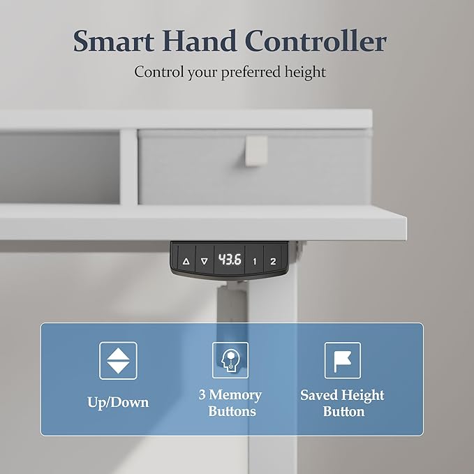 - [Smart Control] Adjust your desk like a pro. The intuitive control panel features memory presets that remember your favorite heights, so you can go from "morning work mode" to "evening chill mode" instantly — one tap, zero hassle.