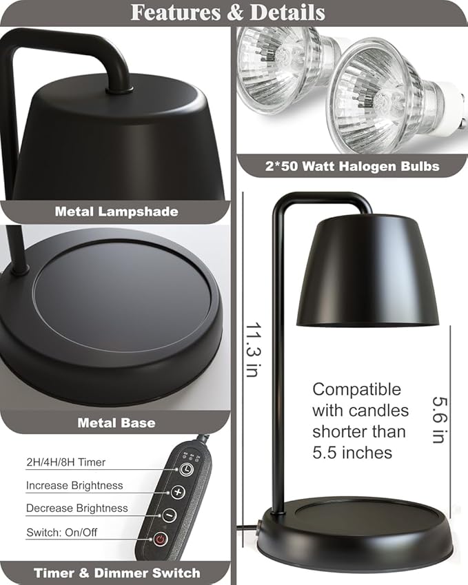 - 【Safety and Environmentally Friendly】: The electric candle warmer lamp operates with a 50-watt halogen bulb (two bulbs included) that gently melts the candle from the top down, effectively releasing its fragrance without the need for an open flame. This safe and healthy approach eliminates fire hazards and prevents the release of harmful pollutants into the air, providing a safer alternative to traditional candle burning.