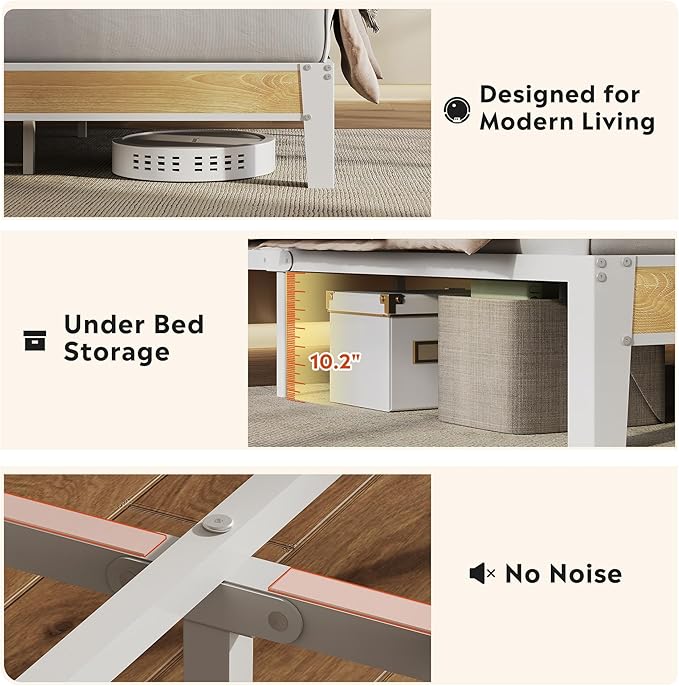 - 【Sturdy Support and No Box Spring Needed】 Constructed with a heavy-duty metal frame, this bed frame supports up to 1500 lbs, providing stable and durable mattress support without the need for a box spring.