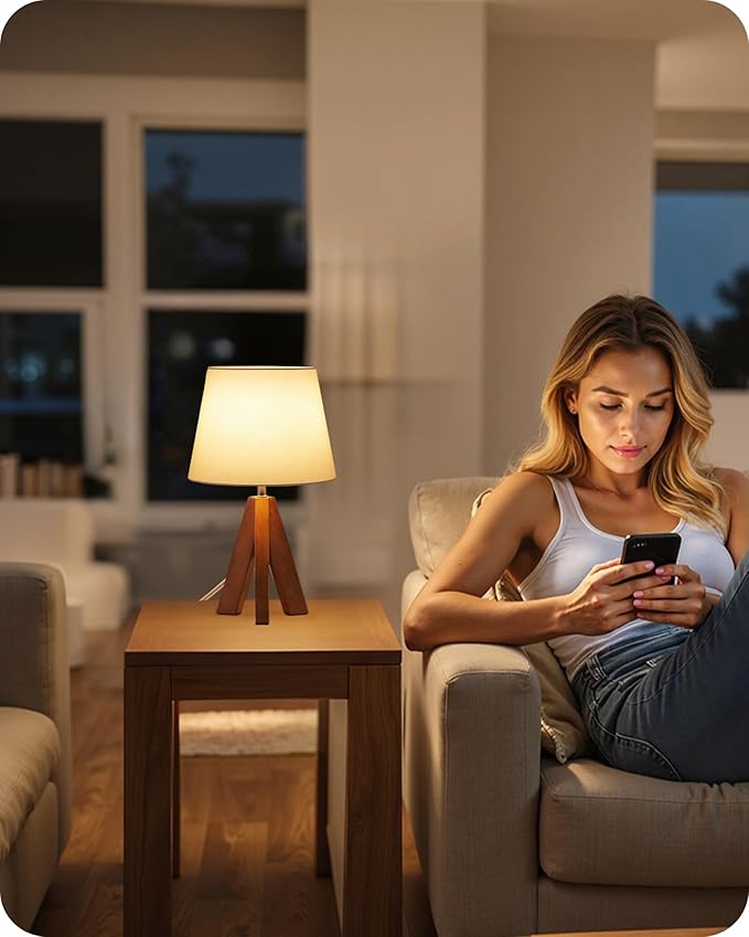 - Mid-Century Modern Design: This wood table lamp blends mid-century modern style with minimalist design, featuring a white fabric lampshade and wooden tripod base for a warm and comfortable ambiance in your home, complementing various decors