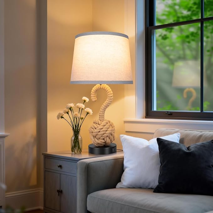 - Convenient USB A+C Charging Ports: Keep your devices charging and your space clutter-free with two 5V/2.1A USB A+C ports built into each wicker lamp base. Our bedside lamps with charging ports are convenient for charging your mobile phone, tablet PC, humidifier, and other electronic devices at any time. Even when the nautical lamp is turned off, the charging function is still available, effectively saving your time and space