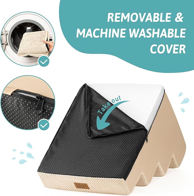 - Machine Washable Cover: Accidents happen, but stains and odors don't have to stay! Our removable cover of cat steps features a hidden waterproof liner that blocks liquids from reaching the foam core. For easy cleanup, simply unzip and toss the entire cover into the washing machine. Note: The foam interior should not be washed.
