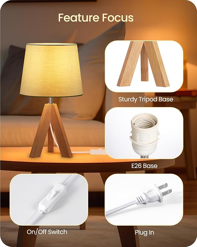 - Solid Structure & Reliable Choice: Our wood bedside table lamp with a tripod structure is more stable and less likely to tip over, making it a safe and reliable lighting option. Modern cute desk lamp is suitable for bedroom, small corner, nightstand, guest room, desk, and kid's room