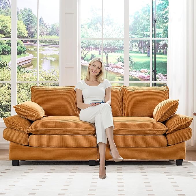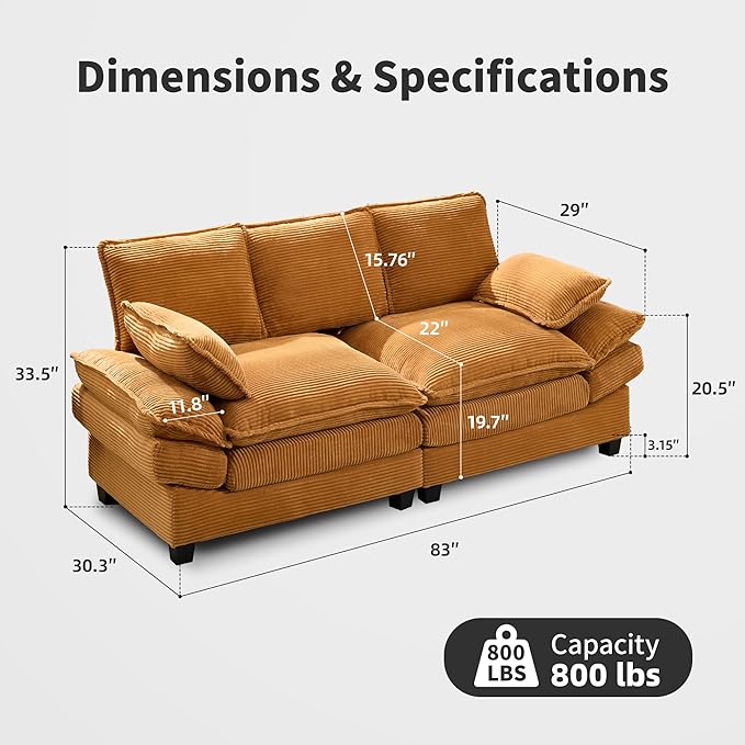 83" Loveseat Sofa, Cloud Couches for Living Room, Comfy Corduroy Couch with Deep Seat, Love Seat Couches for Bedroom, Apartment and Office, Easy Assemble for Small Space (Yellow)
