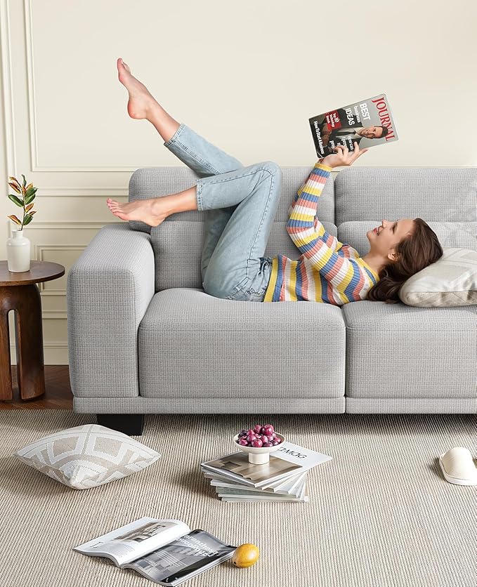 - 【Premium Linen Fabric&Independent Spring】Using high quality linen fabric with 50% thickened foam cushion, the modern sofa delivers a soft and comfortable sitting experience. Individually wrapped pocket springs provide excellent support and remain comfortable even after long hours of lounging.
