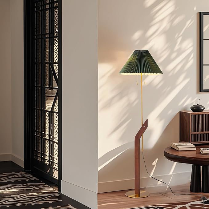 - 【 High quality materials and craftsmanship 】 The sturdy metal bracket, solid wood lamp body in walnut color, and green lampshade create a warm and diffuse luster. wooden floor lamp, metal floor lamp, linen lampshade floor lamp, green floor lamp