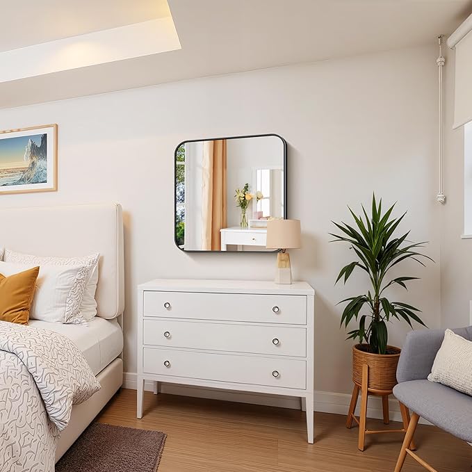 - Elegant Rounded Corners & Premium Safety: Featuring a sleek black metal frame with softly contoured rounded corners. This sophisticated design combines modern elegance with enhanced safety, eliminating sharp edges while adding a luxe minimalist finish. The rich black frame elevates any decor, creating a visually expansive effect that brightens spaces and amplifies the sense of openness.
