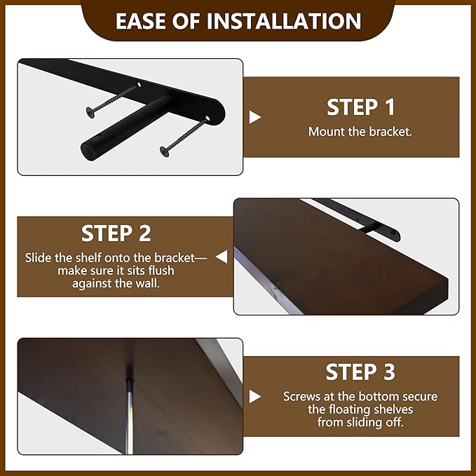 - 【Spacious & Multi-Size Options for Ample Storage】 Available in 36” (6.7”D), 48” (6.7”D), 60” (7.87”D), and 72” (7.87”D), these wall shelves offer generous depths to accommodate everything from books and decor to bulkier items like baskets and towels, helping you maximize wall storage efficiently.