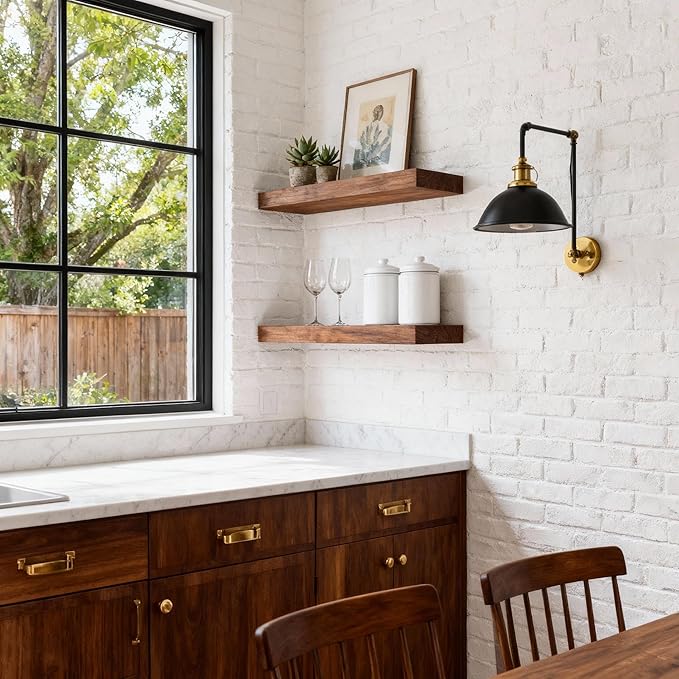- 【Premium Solid Pine Wood with Natural Wood Grain】 Crafted from high-quality solid pine wood, these floating shelves feature a rich wood grain and rustic finish. Treated with a protective sealant, they resist moisture and warping, ensuring long-lasting durability in humid areas like bathrooms and kitchens. This real wood construction adds a touch of farmhouse charm to any space.