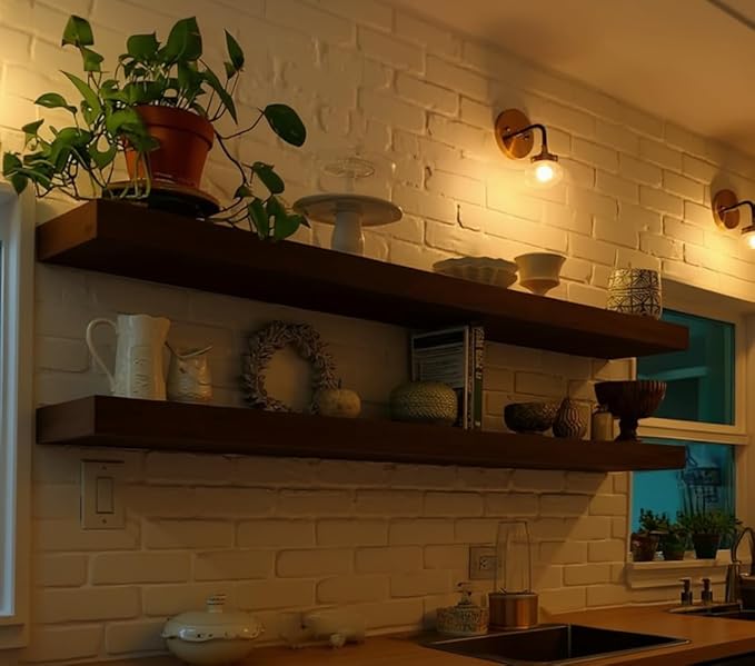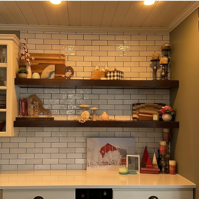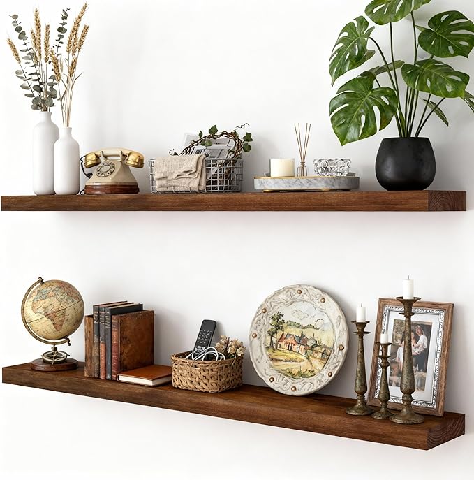 - 【Premium Solid Pine Wood with Natural Wood Grain】 Crafted from high-quality solid pine wood, these floating shelves feature a rich wood grain and rustic finish. Treated with a protective sealant, they resist moisture and warping, ensuring long-lasting durability in humid areas like bathrooms and kitchens. This real wood construction adds a touch of farmhouse charm to any space.