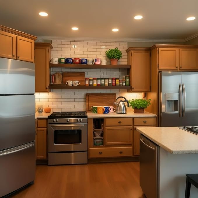 - 【Exceptional Load-Bearing Capacity with Hidden Brackets】 Equipped with heavy-duty invisible metal brackets, each shelf supports up to 50 lbs securely. The brackets are designed to prevent sagging or swaying, offering reliable strength for heavy items such as books or kitchen supplies.