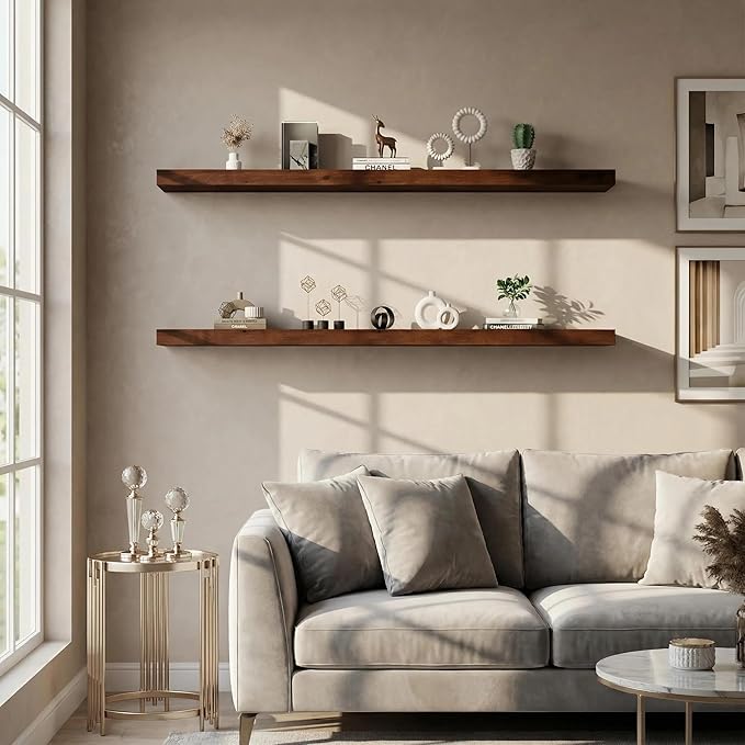 - 【Spacious & Multi-Size Options for Ample Storage】 Available in 36” (6.7”D), 48” (6.7”D), 60” (7.87”D), and 72” (7.87”D), these wall shelves offer generous depths to accommodate everything from books and decor to bulkier items like baskets and towels, helping you maximize wall storage efficiently.
