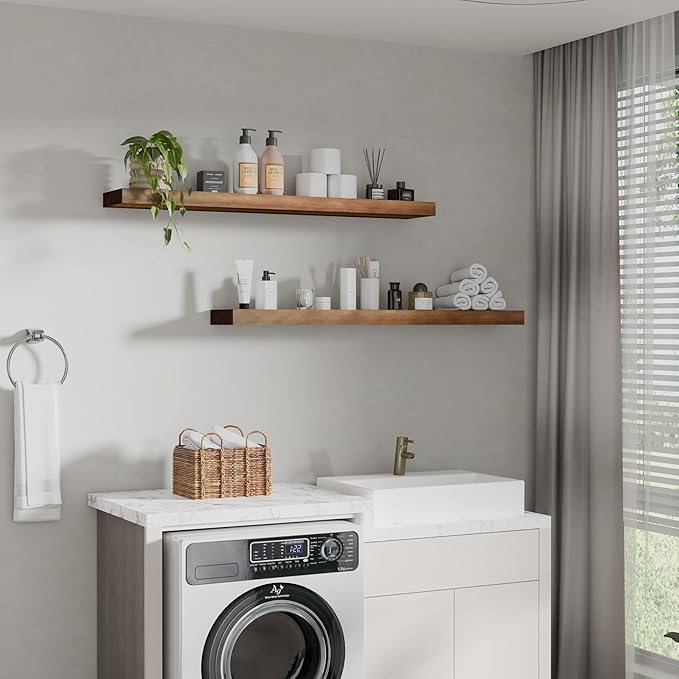 - 【Spacious & Multi-Size Options for Ample Storage】 Available in 36” (6.7”D), 48” (6.7”D), 60” (7.87”D), and 72” (7.87”D), these wall shelves offer generous depths to accommodate everything from books and decor to bulkier items like baskets and towels, helping you maximize wall storage efficiently.