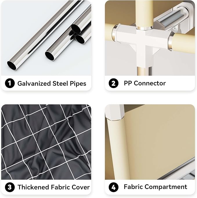 - 【Important Assembly Tips】: Please take a moment to watch the assembly video linked here. It’s crucial to follow the correct assembly sequence and ensure all connectors are securely pressed into place. This prevents fabric tearing and guarantees a stable, wobble-free wardrobe.