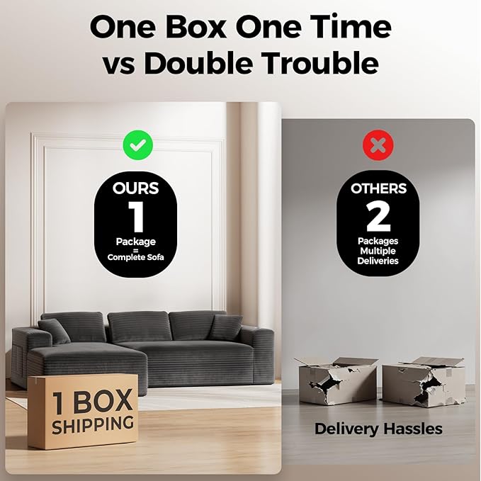 - [1 Package Shipping] : This modular sectional sofa ships in a single box—you can sooner to enjoy the sofa with family. No waiting for multiple shipments, no assembly hassles. Enjoy fast, convenient delivery, and start relaxing on your new sofa as soon as it arrives! And it suggets allow 48–72 hours to regain original shape and firmness.