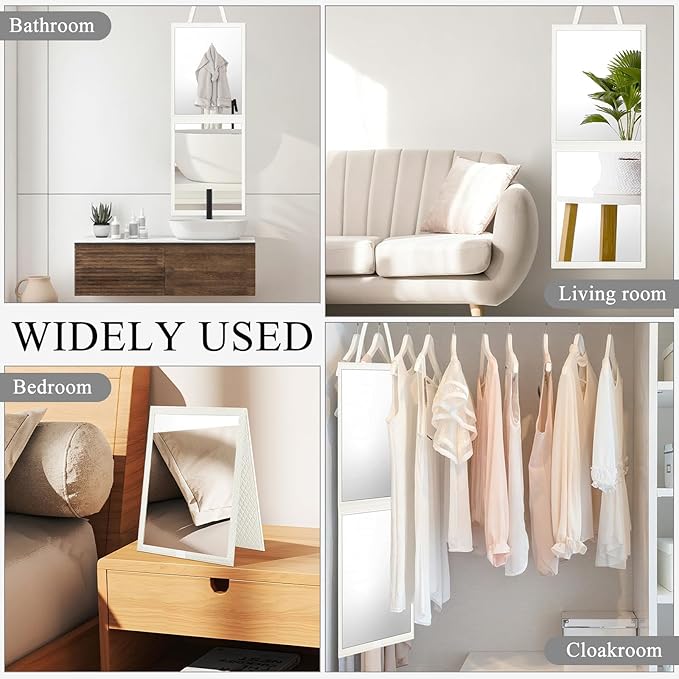 - Portable Full Body Mirror: This folding dance mirror comes foldable design and sturdy handles, make the wall mirror highly portable. It can be conveniently hung on a hanger, towel rack, or curtain rod. Perfect for travel and small spaces as a body mirror, also flexible as a desk mirror. Say goodbye to old makeup mirrors that limit you to a specific place or narrow view