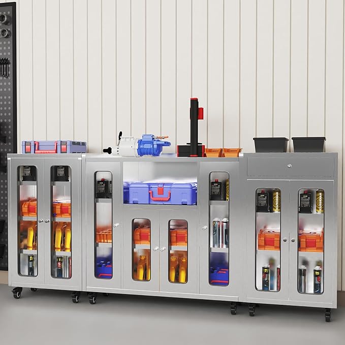 - Heavy-duty Stainless Steel: Crafted from premium stainless steel, this storage cabinet offers superior strength, rust resistance, and long-lasting durability. The smooth brushed finish resists stains and corrosion, making it ideal for both indoor and outdoor environments such as kitchens, garages, and workshops.