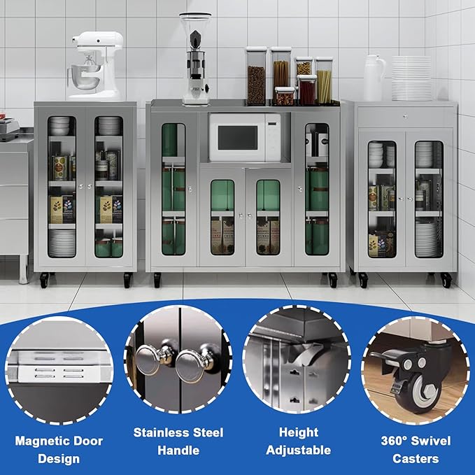 - Heavy-duty Stainless Steel: Crafted from premium stainless steel, this storage cabinet offers superior strength, rust resistance, and long-lasting durability. The smooth brushed finish resists stains and corrosion, making it ideal for both indoor and outdoor environments such as kitchens, garages, and workshops.