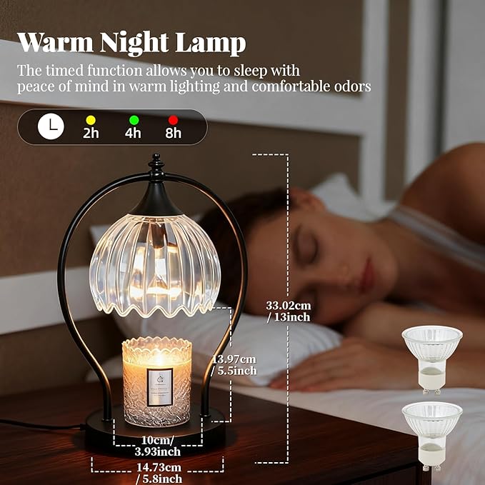 - Timer & Fragrance Control: Create the perfect ambiance with the dimmer candle warmer, featuring 2H/4H/8H timer settings and four adjustable brightness levels. Easily control the melting speed and fragrance intensity to match your mood. The timer ensures you never forget to turn off the candle lamp, offering convenience and peace of mind