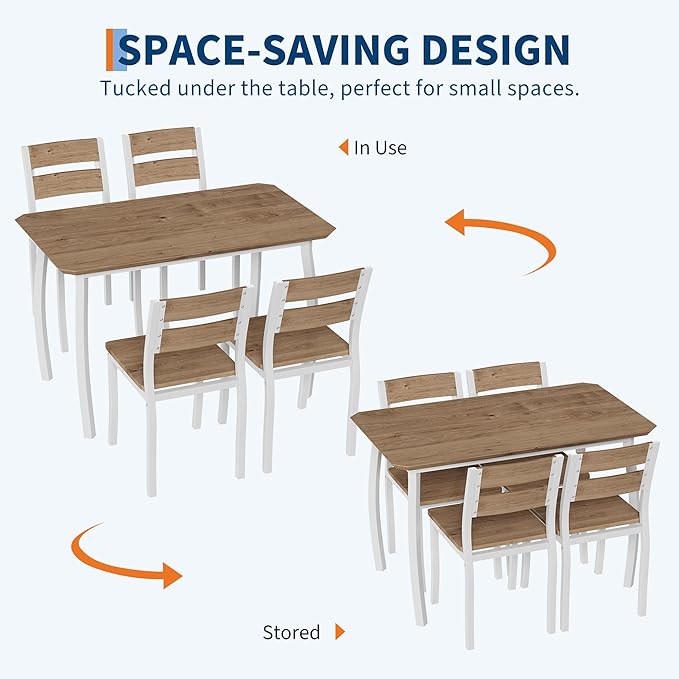 - Space-Saving & Versatile: Chairs tuck neatly under the wooden dinner table when not in use, maximizing floor space for smaller rooms. The compact dinette set doubles as a computer desk, work table, or bar table, adapting to your lifestyle