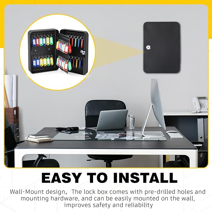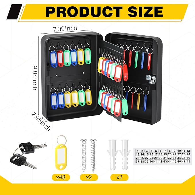 - Complete Organization Solution: with colorful key tags and hooks, ensuring each key is easily identifiable. This comprehensive locking key box set streamlines key management, eliminating the hassle of misplaced or unidentified keys