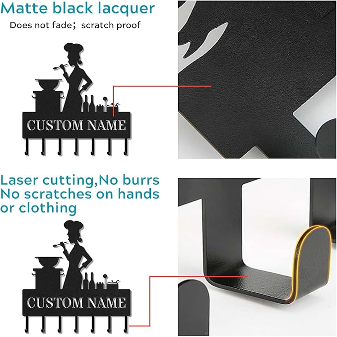 Personalized Key Holder for Wall, Custom Metal Kitchen Key Hooks with Name, Meta Jacket Holder Hooks Organizer Rack, Jacket Hanger Decor for Kitchen, Entryway, Hallway, Office, Doorway