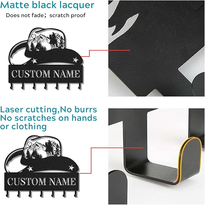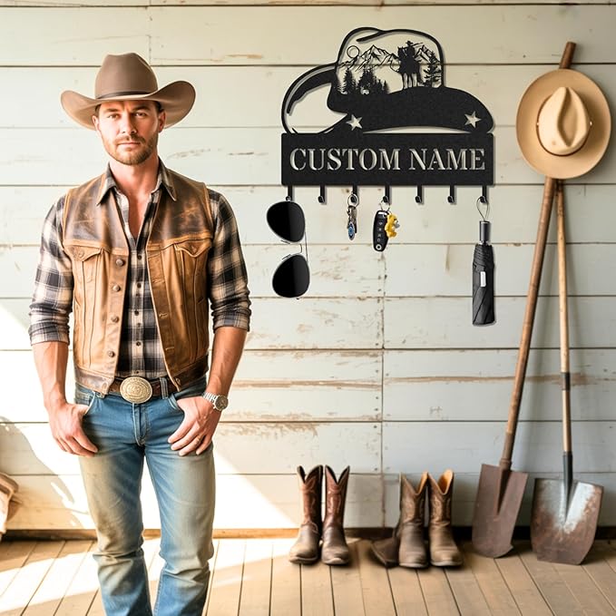 Personalized Key Holder for Wall, Custom Metal Cowboy Key Hooks with Name, Meta Jacket Holder Hooks Organizer Rack, Jacket Hanger Decor for Kitchen, Entryway, Hallway, Office, Doorway