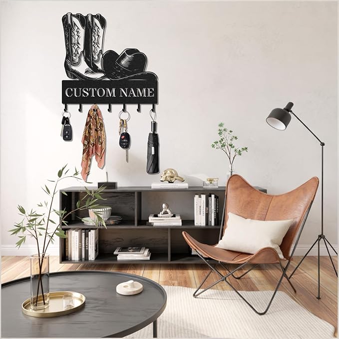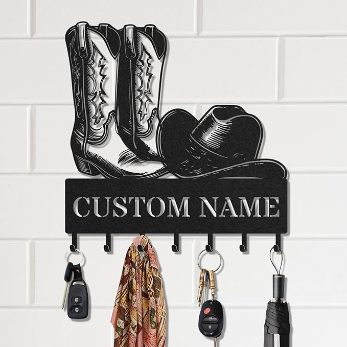 Personalized Key Holder for Wall, Custom Metal Cowboy Key Hooks with Name, Meta Jacket Holder Hooks Organizer Rack, Jacket Hanger Decor for Kitchen, Entryway, Hallway, Office, Doorway