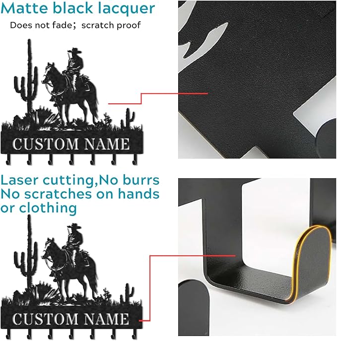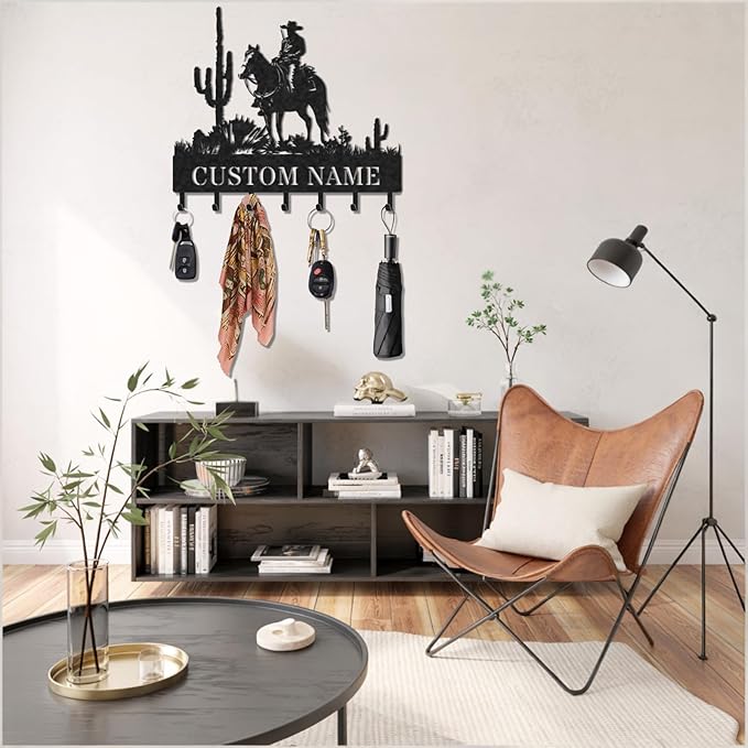 Personalized Key Holder for Wall, Custom Metal Cowboy Key Hooks with Name, Meta Jacket Holder Hooks Organizer Rack, Jacket Hanger Decor for Kitchen, Entryway, Hallway, Office, Doorway