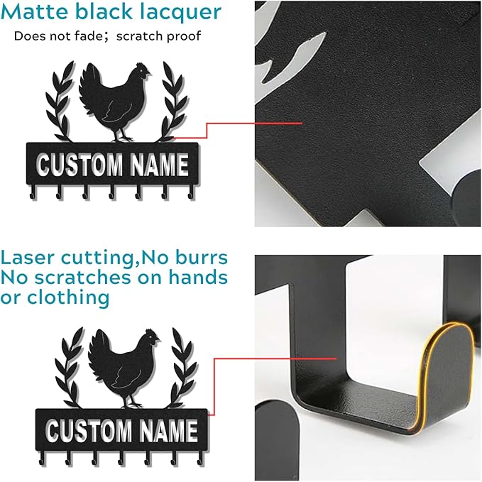 Personalized Key Holder for Wall, Custom Metal Chicken Key Hooks with Name, Meta Jacket Holder Hooks Organizer Rack, Jacket Hanger Decor for Kitchen, Entryway, Hallway, Office, Doorway