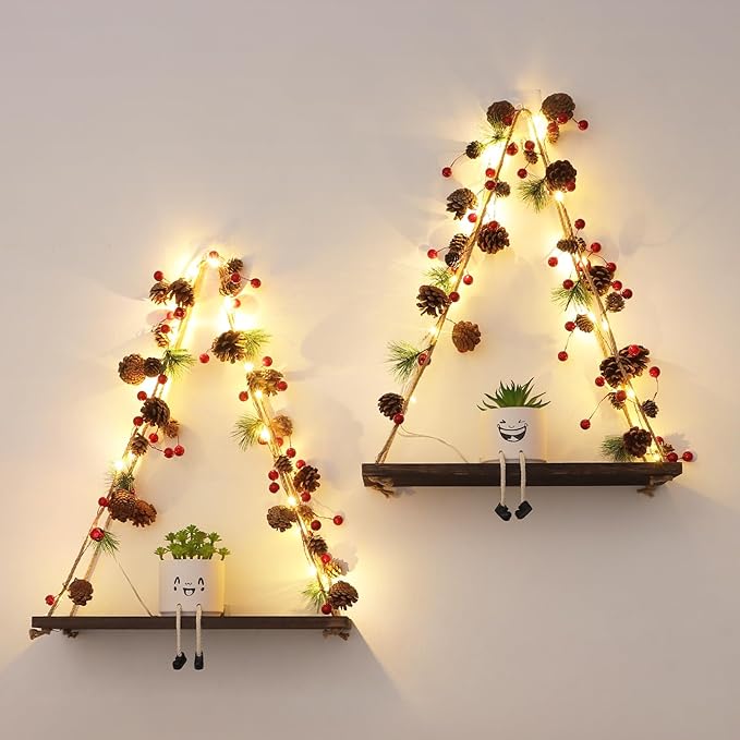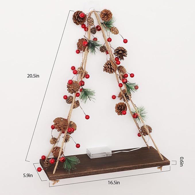 - Complete Package with Assurance: Your purchase includes two wood floating shelves and Christmas Pinecone and Bell with LED light strips (batteries not included), along with all necessary installation hardware. We stand behind the quality of our products, if you have any questions, our friendly customer support team is available 24/7 to assist you.