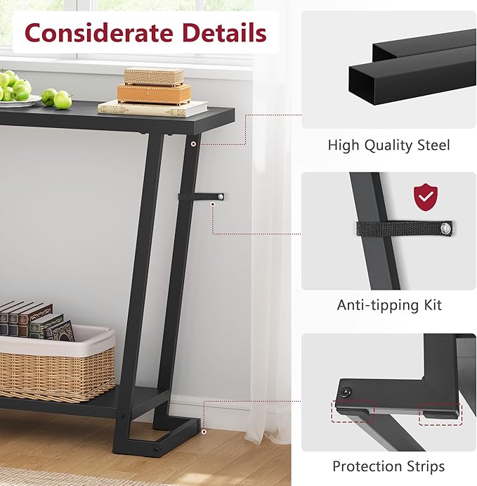 - 【Easy to Assemble】This console table for entryway comes with clearly labeled parts, detailed instructions, and all necessary tools included. Minimal parts allows one person to effortlessly complete setup this hallway table within minutes.