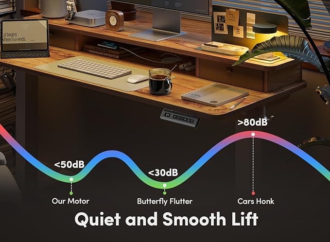 FEZIBO 63 x 28 Inch Deeper Height Adjustable Electric Standing Desk with Double Drawers, Sit Stand Up, Home Office Computer Desk with 4 Height-Adjustable Feets & 2 Hooks, White Frame/Light Rustic Top