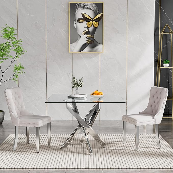 - 【Versatile Usage Glass Table】Provides plenty of space for dining, working, or other activities, making it a practical addition to any space. Whether it's for dining, working, or socializing, this table is versatile enough to meet your needs in various settings, such as homes, offices, or event venues.